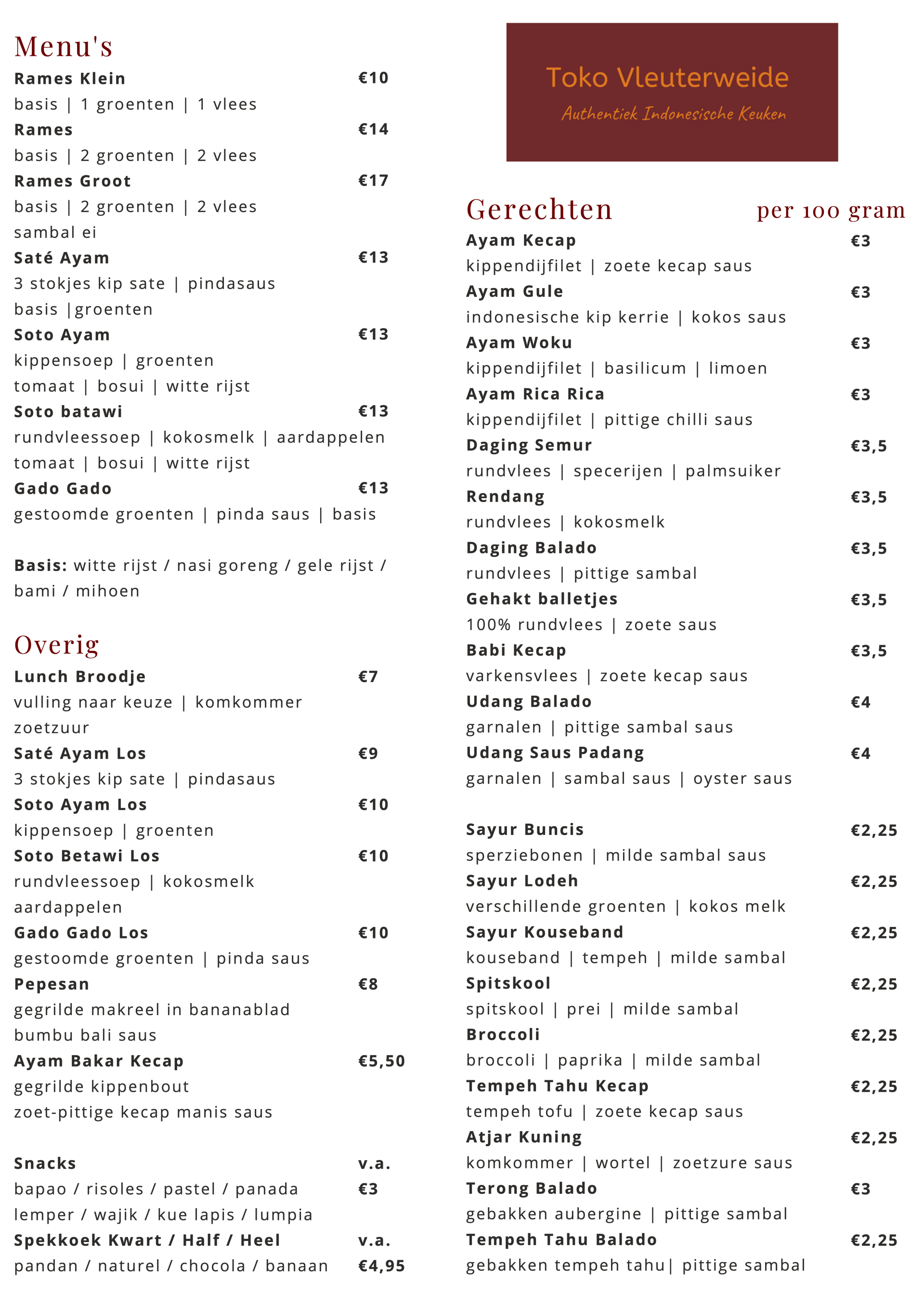 van de menu's in de toko